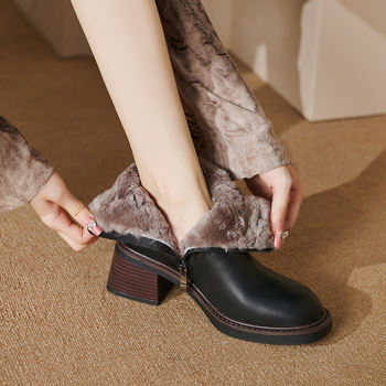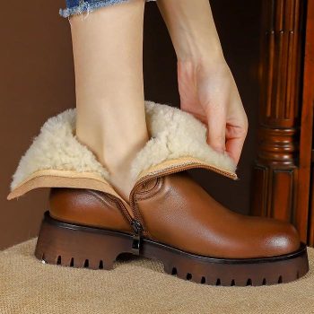 Women’s Genuine Leather Winter Wool Snow Boots with Zipper & Square Toe
