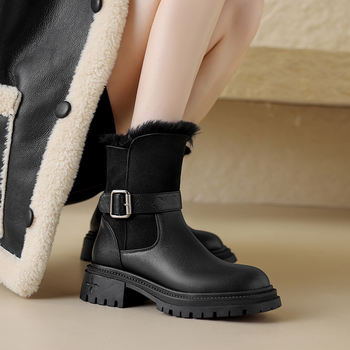2026 Women’s Warm Wool Winter Snow Boots – Split Leather Mid-Heel Comfort