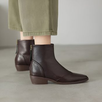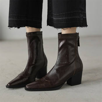 Women’s Pointed Toe Chunky Heel Ankle Boots – Elegant Winter Style