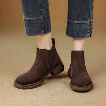 Winter Women’s Cow Suede Leather Chunky Heel Boots