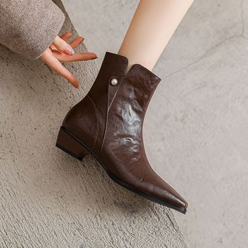 Genuine Leather Pointed Toe Ankle Boots for Women