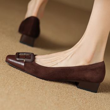 Autumn Suede Sheepskin Slip-On Flats with Metal Buckle