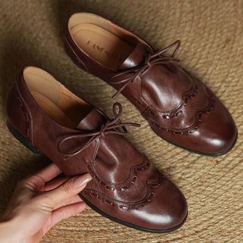 Women’s Genuine Leather Oxford Flats Retro Lace-Up Shoes