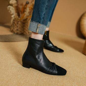 Women’s Leather Chunky Heel Ankle Boots with Pointed Toe and Back Zipper