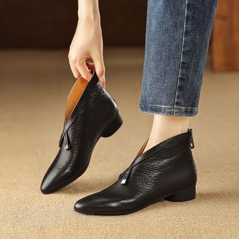 Autumn Women’s Genuine Leather Western Ankle Boots with Chunky Heel
