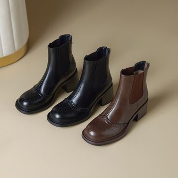 Women’s Autumn Chelsea Boots – Split Leather, Round Toe, Chunky Heel