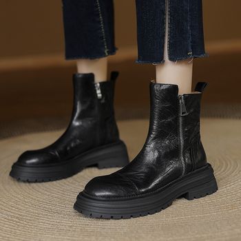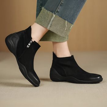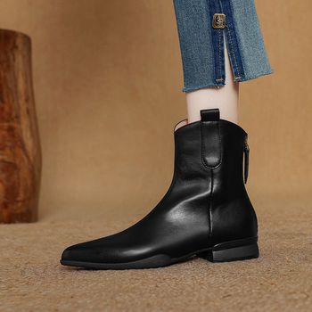 Women’s Genuine Leather Square Toe Ankle Boots with Zip