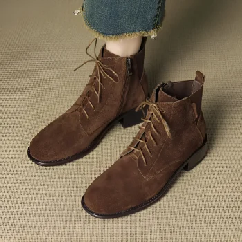 Women’s Cow Suede Ankle Boots with Chunky Heel and Zipper