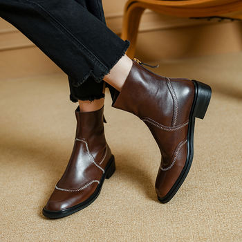 Women’s Retro Chunky Heel Ankle Boots with Square Toe