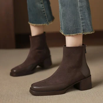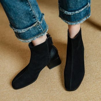 Women’s Warm Suede Square-Heel Winter Ankle Boots