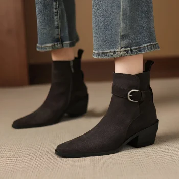 Women’s Winter Suede Chelsea Boots with Square Heel and Round Toe