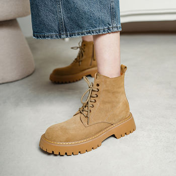 Women’s Cow Suede Winter Ankle Boots with Mid Heels