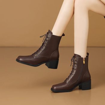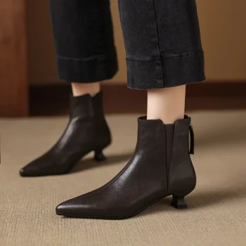Women’s Genuine Leather High Heel Ankle Boots – Winter Fashion Booties for Office and Daily Wear