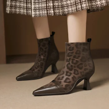 Leopard Print High Heel Ankle Boots for Women – Sexy Winter Leather Boots