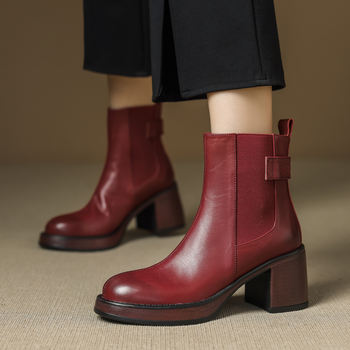 Winter Women Chelsea Boots – Genuine Leather, Chunky Heel Ankle Boots