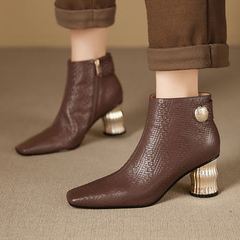 Vintage Leather Square Toe Chelsea Boots for Women – Winter Warm Ankle Heels