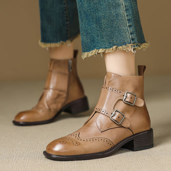 Round Toe Chunky Heel Zipper Ankle Boots for Women