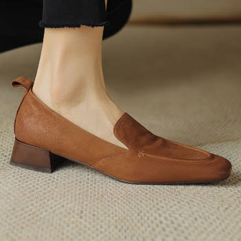 Women’s Suede Leather Square Toe Slip-On Loafers