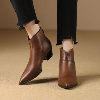 Winter Pointed Toe Leather Chelsea Ankle Boots for Women