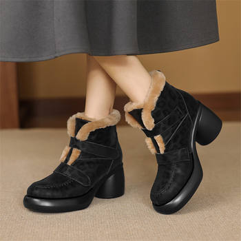 Women’s Buckle Faux Fur Winter Ankle Boots with Non-Slip Platform Sole