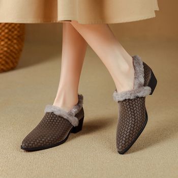 Elegant Winter Women’s Pointed Toe Chunky Heel Pumps