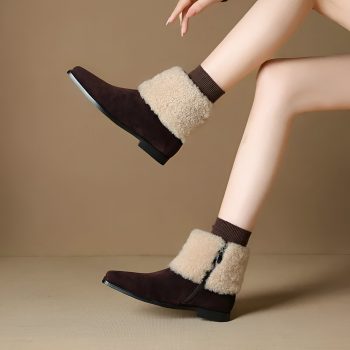 Elegant Winter Suede Ankle Boots for Women – Square Toe Low Heel