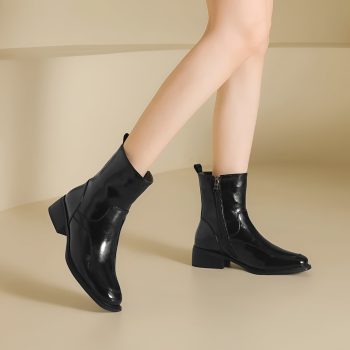 Women’s Winter Split Leather Boots with Square Toe & Chunky Heel
