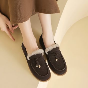 Winter Suede Loafers for Women with Wool Lining and Low Chunky Heel