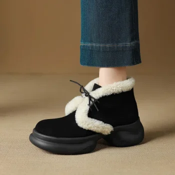 Women’s Winter Cow Suede Lace-Up Platform Ankle Boots
