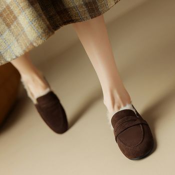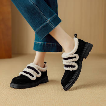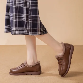 Women’s Winter Genuine Leather Warm Wool Flat Shoes with Soft Sole