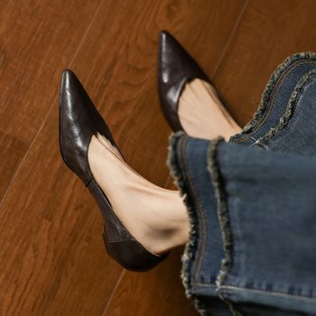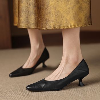 Spring Women’s Genuine Leather Pumps – Pointed Toe, Thin Heel, Slip-On Shoes