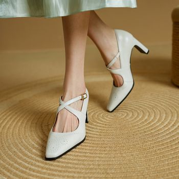 Women’s Square Toe Leather Pumps with Cross Strap High Heel