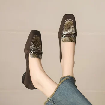 Spring Women Loafers – Kid Suede Leather, Square Toe, Low Heel Slip-on Casual Shoes