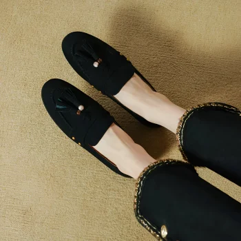 Spring Women Loafers Soft Kid Suede Leather Shoes – Round Toe, Low Heel Slip-on with Tassel