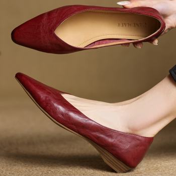 Women’s Sheepskin Pointed Toe Flats with 2cm Kitten Heel – Elegant Slip-On Shoes
