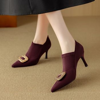 Elegant Pointed Toe High Heel Pumps with Zip & Square Button