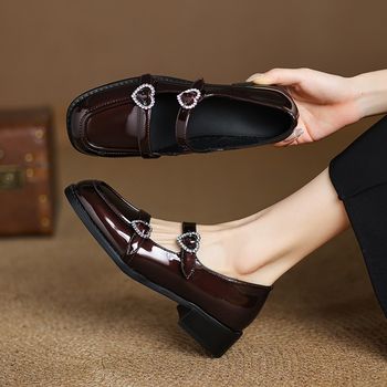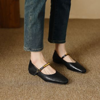 Genuine Leather Mary Jane Pumps with Square Toe and Low Heel