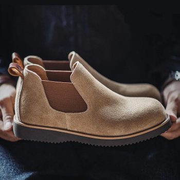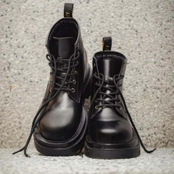 Men’s Low Top Leather Work Boots with Thick Soles – Casual British Style