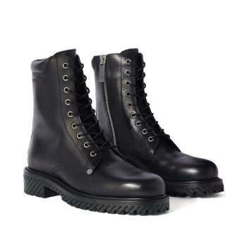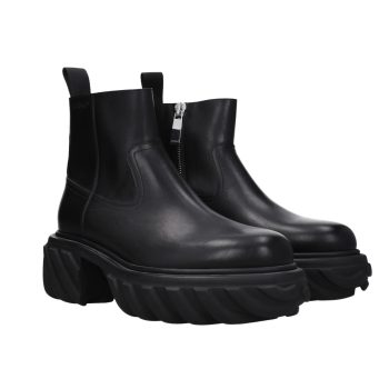 Off-White Black Leather Ankle Boots with Vintage and Aged Effect