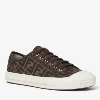 Fendi Domino Brown FF Jacquard Fabric Low-Top Sneakers