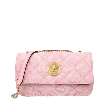 Versace Pink Fabric Shoulder Bag with Front Detail