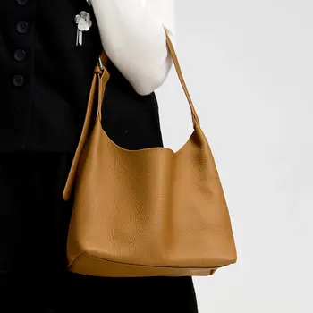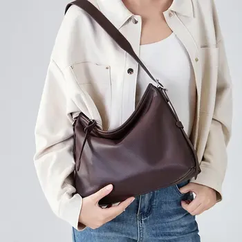 Large Soft Leather Tote Bag for Women – Spacious Retro Shoulder Handbag