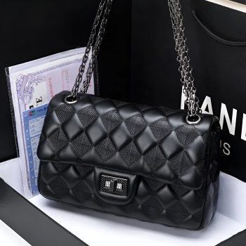 Vintage Diamond Chain Leather Shoulder Bag – Elegant Crossbody for Women