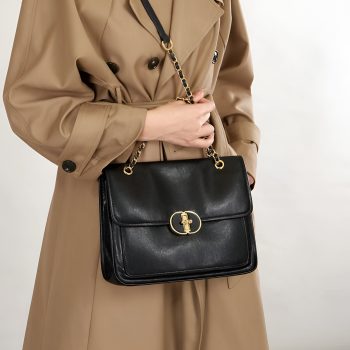 Women’s Genuine Leather Shoulder Bag with Gold-Tone Chain Strap – Crossbody Fashionable Handbag