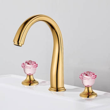 Gold Flower Crystal Handle Bathroom Faucet – 8″ Widespread