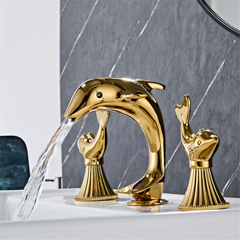 Luxury Dolphin Design Widespread Gold Bathroom Faucet