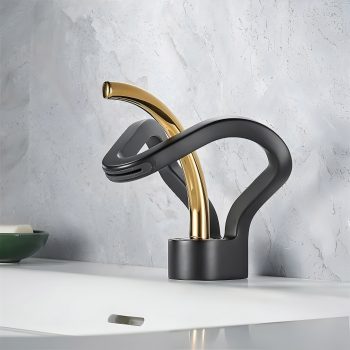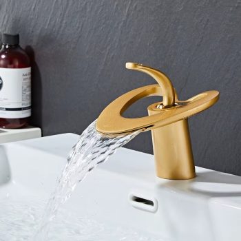 Gray & Gold Waterfall Bathroom Faucet – Modern Brass Basin Mixer Tap