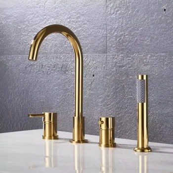 Gold Bathtub Faucet Set with Handheld Shower – Deck Mount