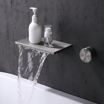 Modern In-Wall Brass Waterfall Basin Faucet – White & Gray Single Lever