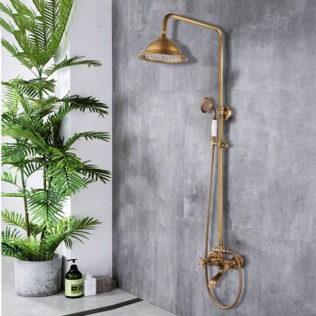 Antique Brass Wall Mounted Rainfall Shower and Bathtub Faucet Set